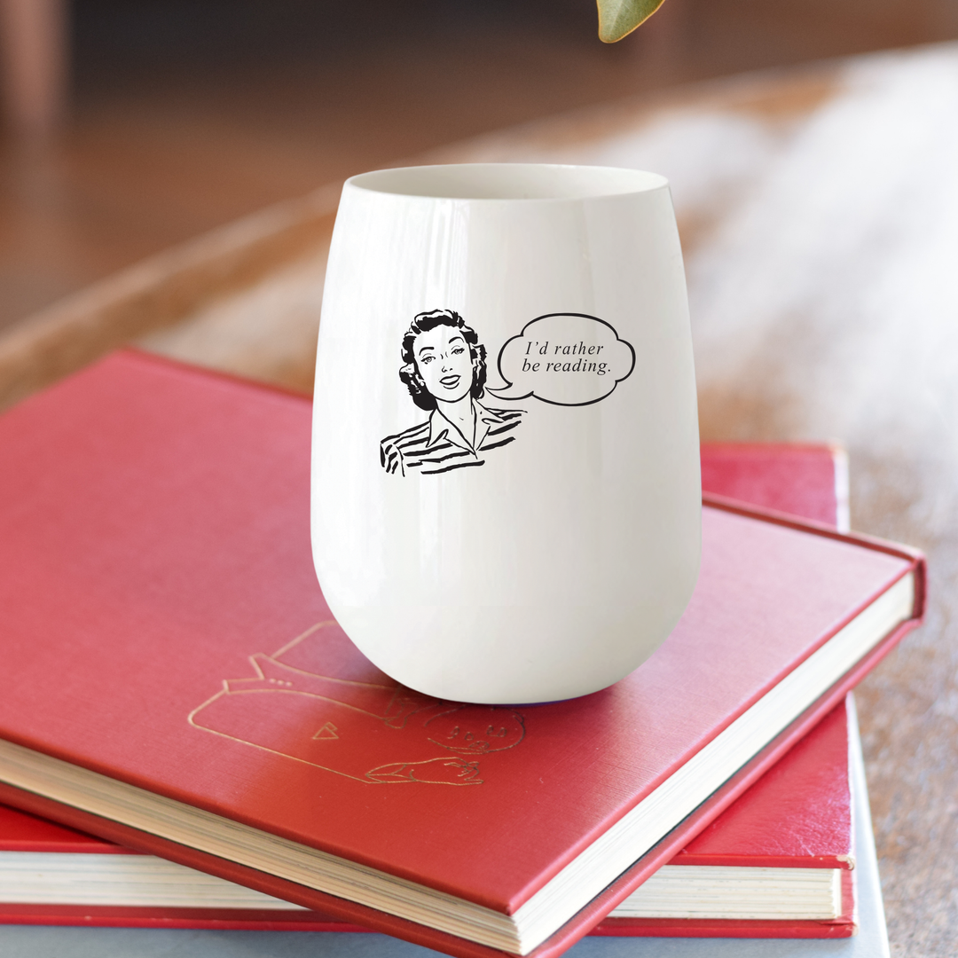 "I'd rather be reading" Vintage Lady Stemless Wine